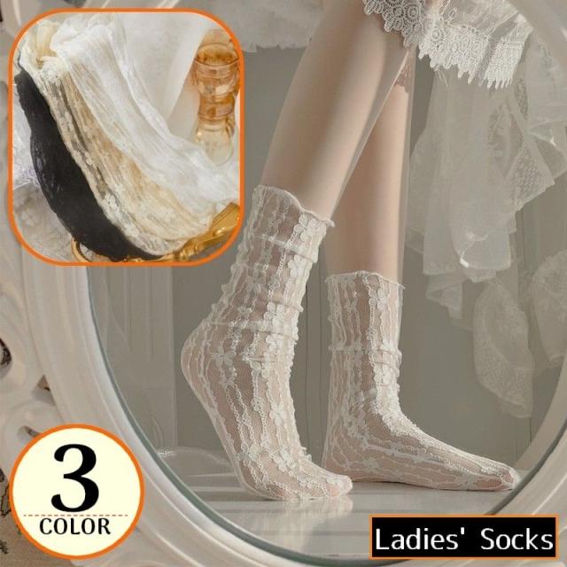 靴下 クルーソックス レディース レース メロウフリル 薄手メッシュ 通気性 シースルー 透け感 ロリータ 甘ロリ 可愛い 春夏