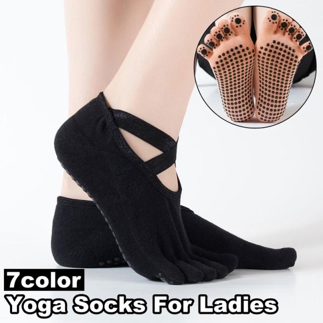 脱げにくいクロスバンドのレディース用5本指ヨガソックスです。