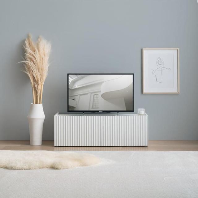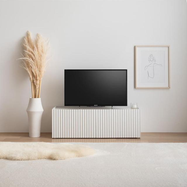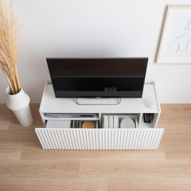 清潔感あふれるホワイトとおしゃれな波型扉が魅力のテレビ台。