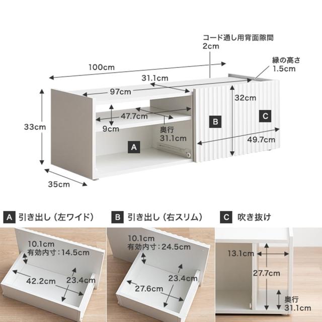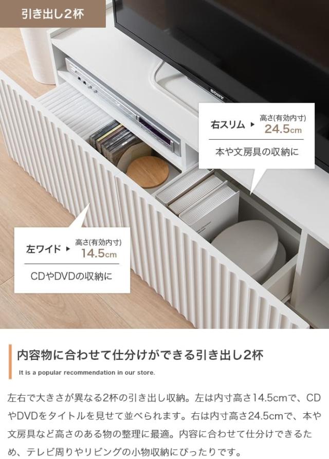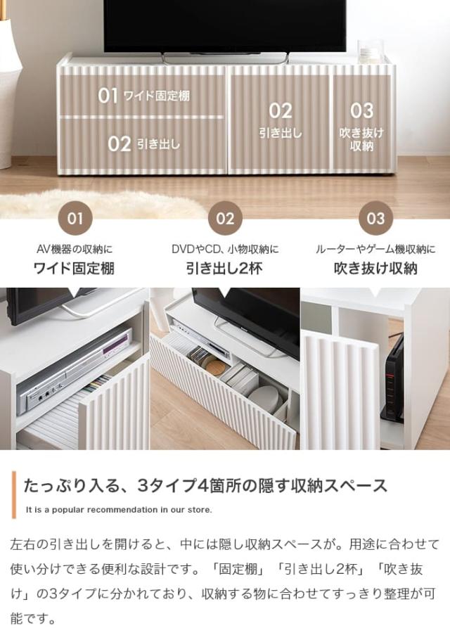 引き出し付きテレビボード テレビ台 リビング家具 テレビボード AV収納 おしゃれテレビ台 コンパクトテレビ台 白家具 波型扉