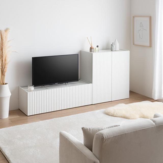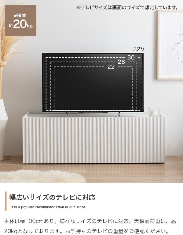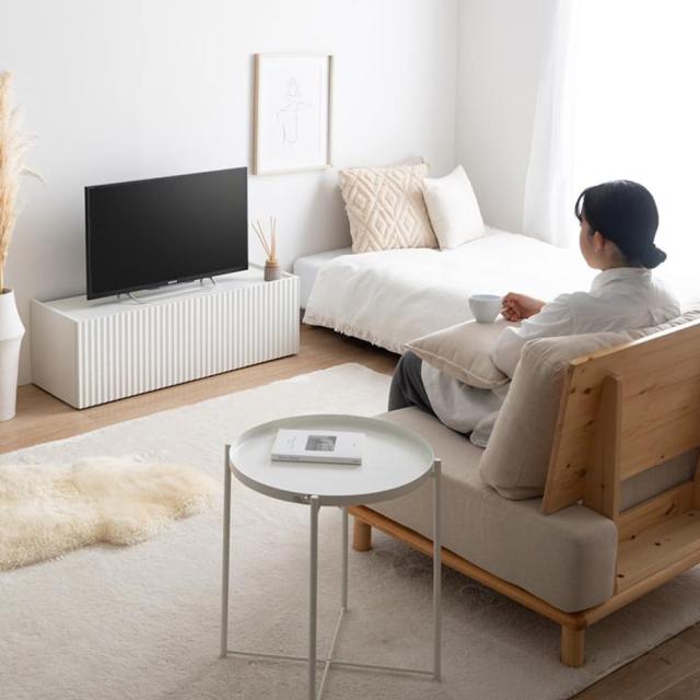 お部屋をすっきり見せたい方にぴったりな、清潔感のあるホワイトカラーと波型扉が印象的なテレビ台。
