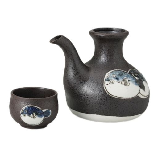 エールネット(ALE-NET) 酒器セット 徳利 おちょこ セット ふぐ かんぴん & 盃 (2個付) セット 陶器 美濃焼 冷酒器 熱燗 日本酒 酒器 とっくり 日本製