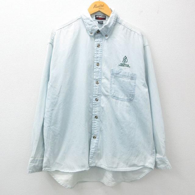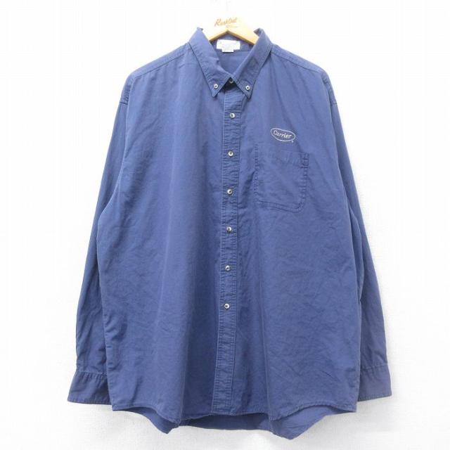 古着 長袖 シャツ メンズ HUNTINGTON 大きいサイズ コットン ボタンダウン 薄紺 ネイビー デニム XLサイズ 中古 トップス 中古 古着