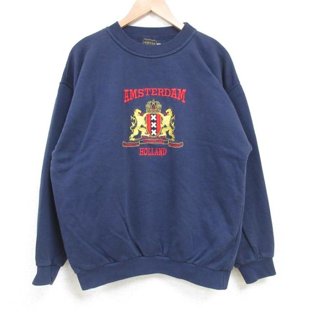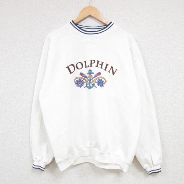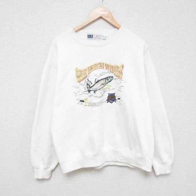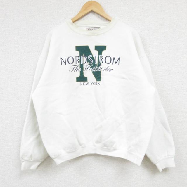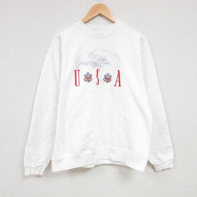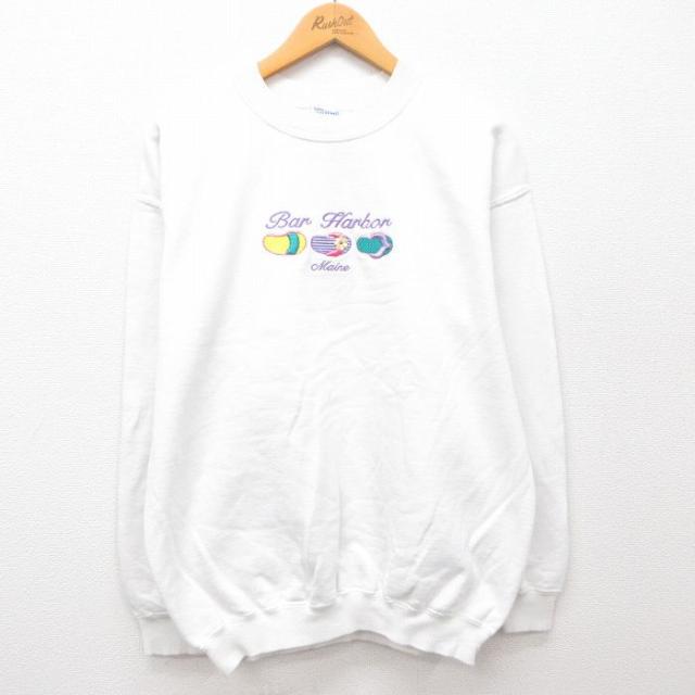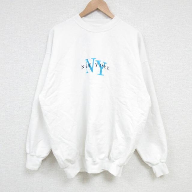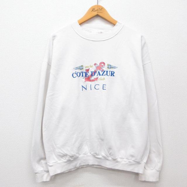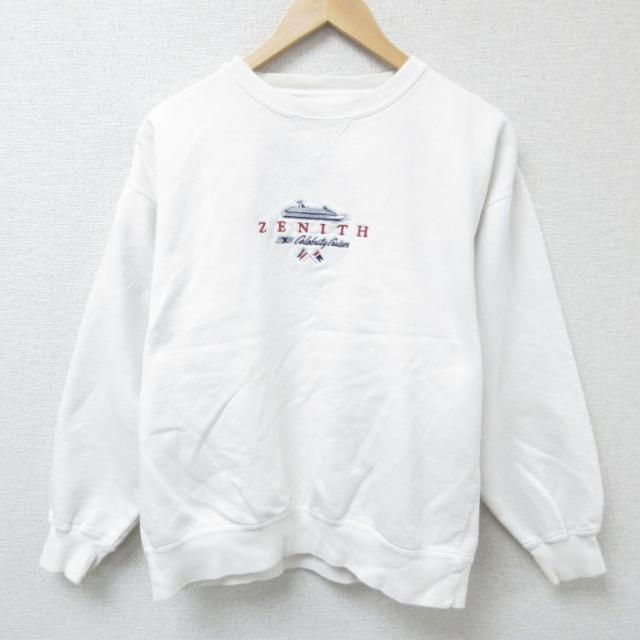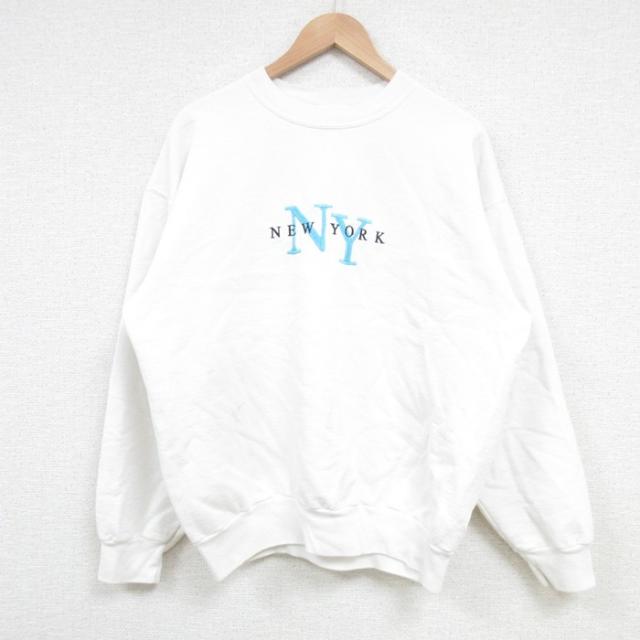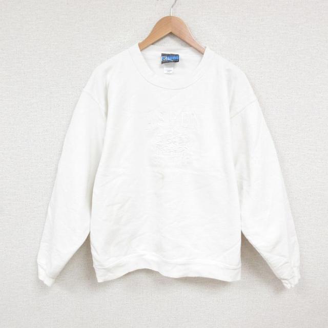 【商品名】 L★古着 長袖 スウェット メンズ 00年代 00s サンディエゴ 刺繍 クルーネック 白