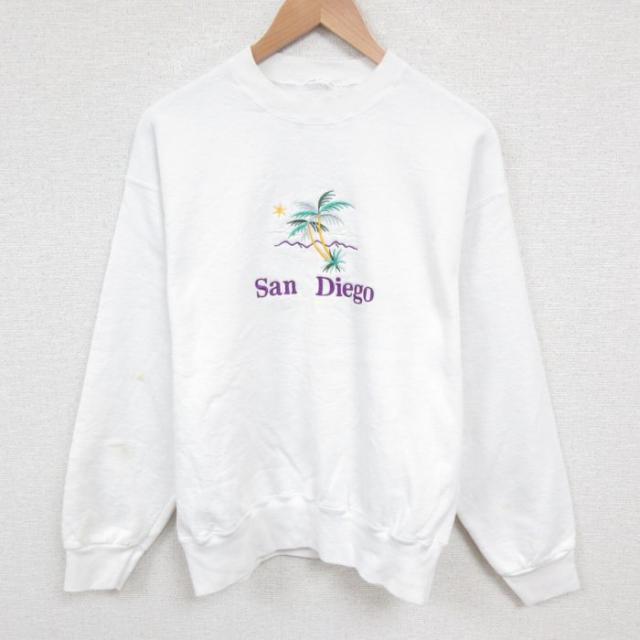 古着 長袖 スウェット メンズ 00年代 00s サンディエゴ 刺繍 クルーネック 白 ホワイト Lサイズ 中古 スエット トレーナー ト 中古 古着