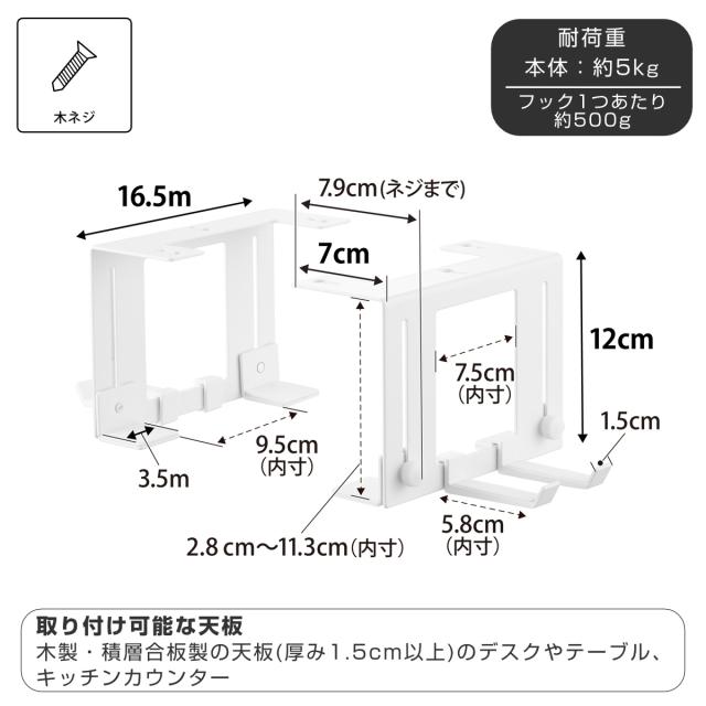 | 備考 | 取り付け可能な天板:木製・積層合板製の天板(厚み1.5cm以上)のデスクやテーブル、キッチンカウンター |
