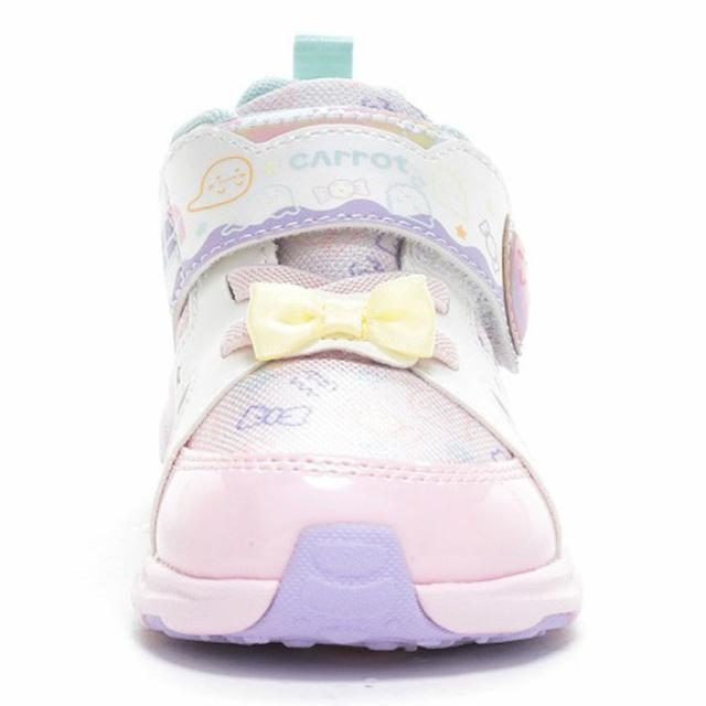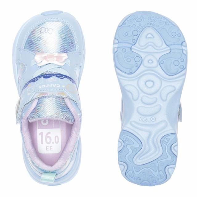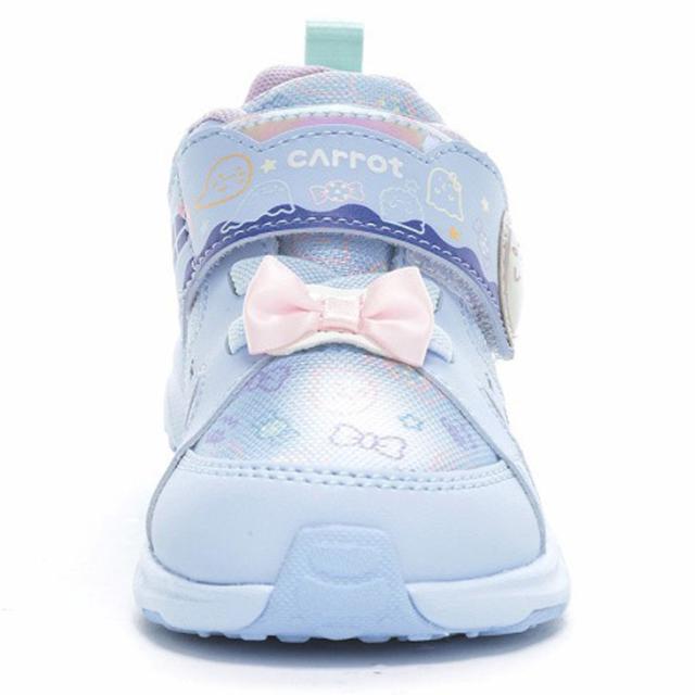 ムーンスター キャロット キッズシューズ 女の子 スニーカー 14-19cm 2E 子供靴|総柄 シューズ かわいい リボン ゴム紐 ベルトタイプ|女児 ガールズスニーカー 通園 通学 運動靴 ピンク ブルー ブランド moonstar carrot 月星 くつ/CR-C2383