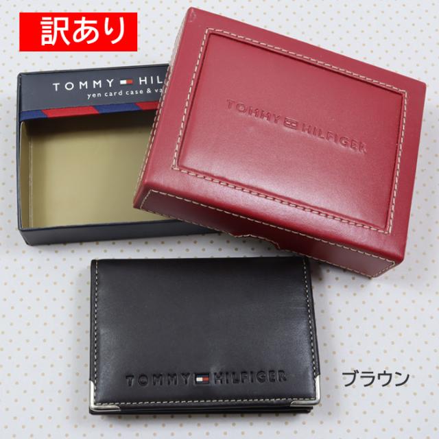 訳あり返品不可 cc-3991 トミーヒルフィガー カードケース 0096-4860/02 YEN CARD CASE BROWN ブラウン 名刺入れ ロゴ型押し レザー 男女兼用 トミー TOMMY HILFIGER