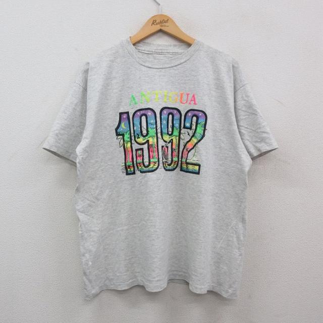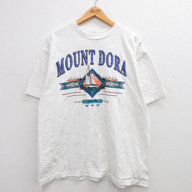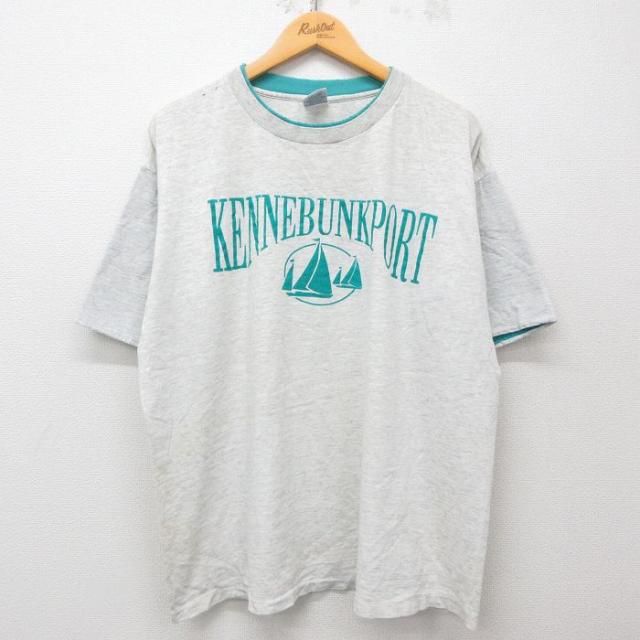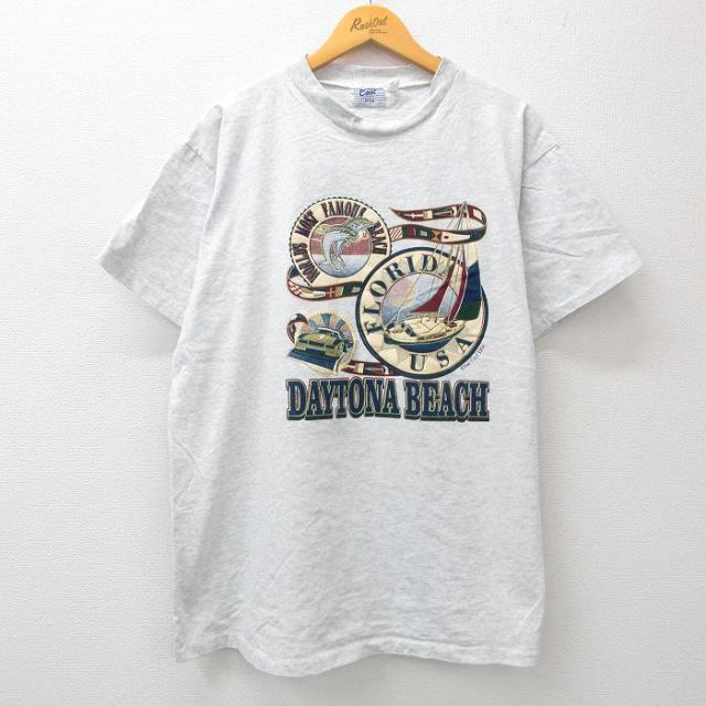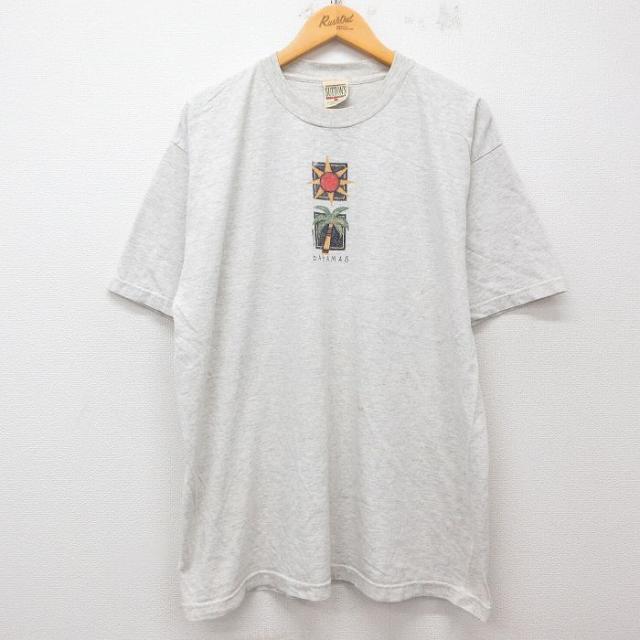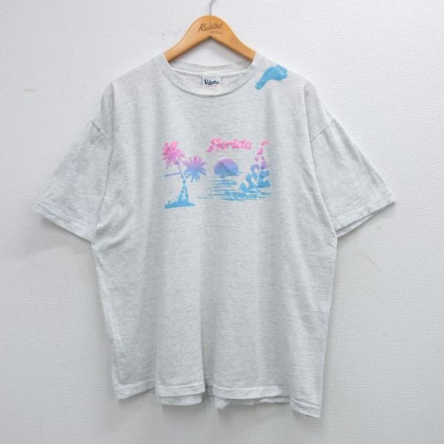 古着 半袖 ビンテージ Tシャツ メンズ 90年代 90s フロリダ ヤシの木 ヨット 大きいサイズ コットン クルーネック USA製 薄グ 中古 古着