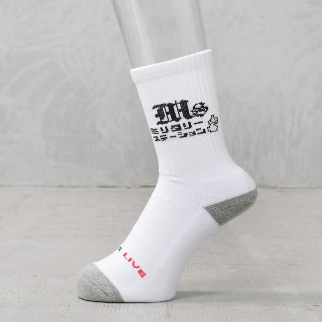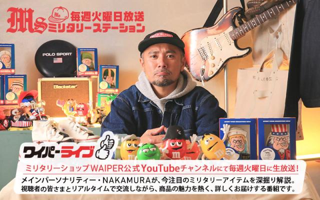 WAIPER公式YouTubeチャンネルにて、NAKAMURAがメインパーソナリティーを務める毎週火曜日の生放送ワイパーライブ【ミリタリーステーション】のオリジナルソックスが登場。お馴染みのミリステロゴが大胆にあしらわれたクルーソックス。 国産のリブソックスで足周りはクッショニングにこだわりふっくらとした履き心地を味わうことができます。リブにほどよいホールド感を持たせているのに伸びにくいのもポイントで、負担のかかる踵やつま先の裏地はパイル生地になっており、快適かつ丈夫な造り。 日本国内で生産されたハイクオリティなソックスとなっています。ベーシックカラーにロゴが際立つデザインは、ミリステファンならずとも足元の外しアイテムとして取り入れたい逸品。 デイリーユースはもちろんギフトとしてもオススメの一足です。