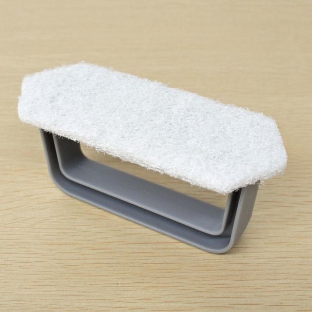 グリップ(持ち手)付きの不織布クリーナーです。握って力を入れてしっかり洗えます。長さ約12cmのミニサイズで、小回りが効くため広い面積もコーナー洗いにも使えます。