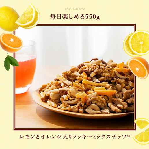 レモンとオレンジ入りラッキーミックスナッツ 550g ナッツ ドライフルーツ ドライレモン&ドライオレンジ入り トレイルミックス
