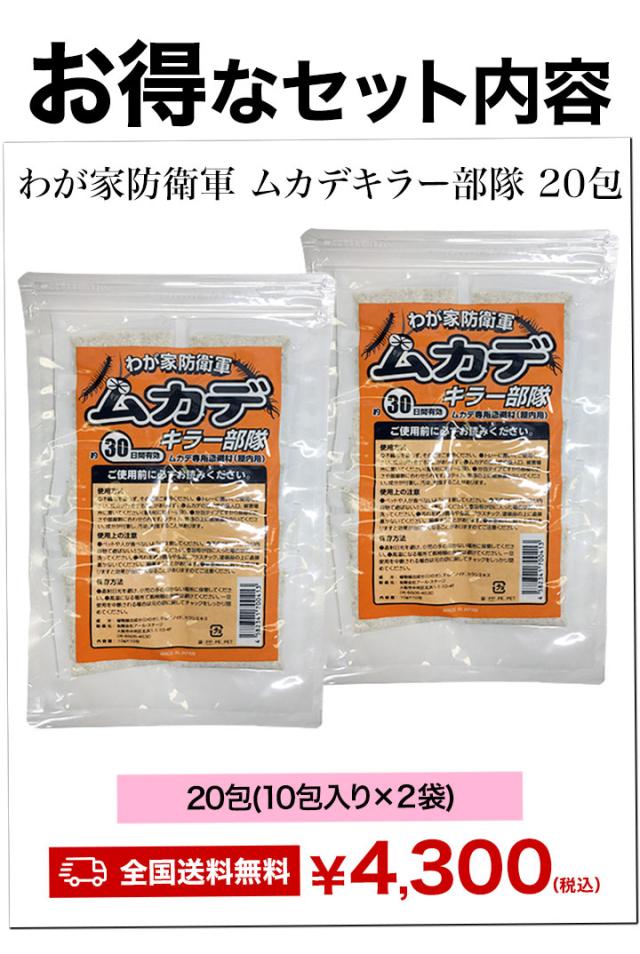 20包 わが家防衛軍 ムカデキラー部隊 忌避剤 ムカデ対策 むかで対策 置くだけ忌避剤 ムカデ駆除 むかで駆除 ムカデ撃退 ヤスデ ダンゴムシ ゲジゲジ 送料無料