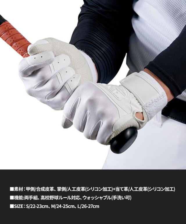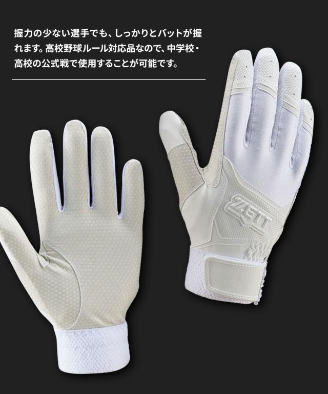 ゼット 野球 バッティンググローブ ジュニア 両手 バッティンググラブ 両手用 高校野球ルール対応 手のひらシリコン加工 バッティング手袋 手ぶくろ 手袋 ベースボール ソフトボール トレーニング 部活 クラブチーム 大人 白 黒 ホワイト ブラック ZETT bg519hs