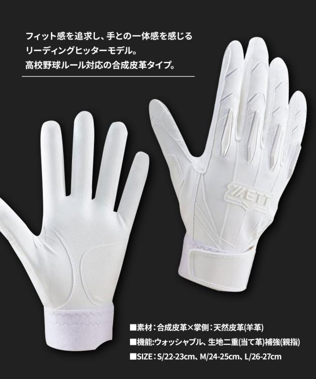 ゼット 野球 バッティンググローブ ジュニア 両手 バッティンググラブ 両手用 高校野球ルール対応 リーディングヒッター バッティング手袋 手ぶくろ 手袋 ベースボール ソフトボール トレーニング 部活 クラブチーム 白 黒 ホワイト ブラック ZETT プロステイタス bg13012hs