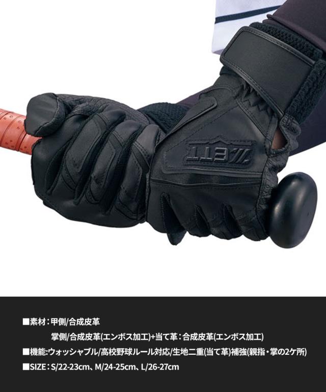ゼット 野球 バッティンググローブ ジュニア 両手 バッティンググラブ 両手用 高校野球ルール対応 エンボス加工 バッティング手袋 手ぶくろ 手袋 ベースボール ソフトボール トレーニング 部活 クラブチーム 大人 白 黒 ホワイト ブラック ZETT IMPACTZETT bg19202hs