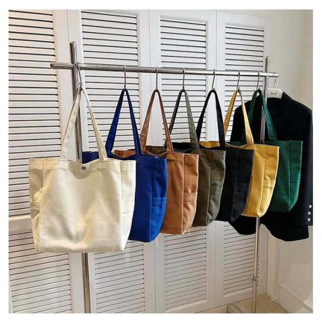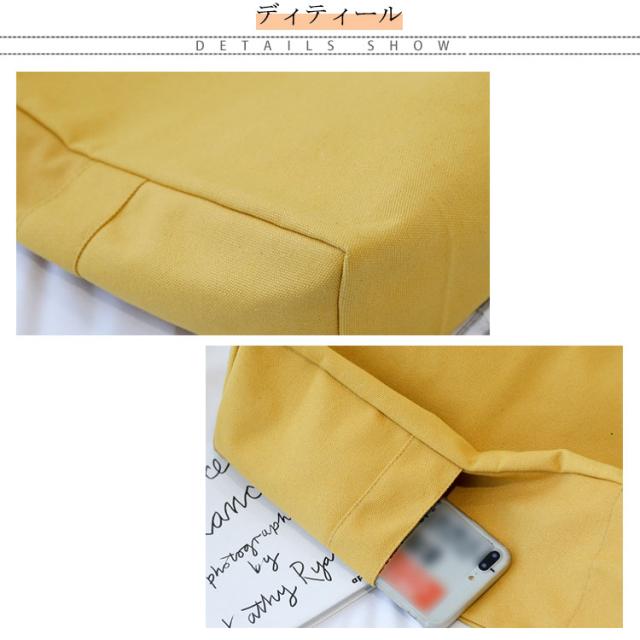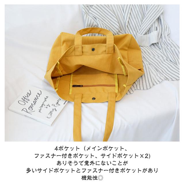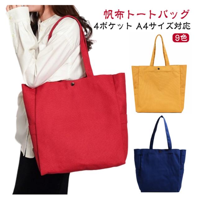 | 4ポケット A4サイズ対応 帆布トートバッグ 9色 【使える♪トートバッグ 帆布 A4サイズ対応】 ・レディース、メンズ、20代、30代、40代、50代 幅広い方にお使い頂けます。 <おすすめポイント> (1)A4も楽々入る大容量 たくさん入るけど大きすぎない絶妙なサイズ感。 A4サイズも楽々入る! (2)4ポケット(メインポケット、ファスナー付きポケット、サイドポケット×2) ありそうで意外にないことが多いサイドポケットとファスナー付きポケットがあり 機能性◎ (3)軽くて疲れにくい わずか320g (4)丈夫な帆布生地 耐久性のある厚手の帆布(キャンバス)素材を使用。手触りの良い滑らかな質感。 (5)水洗いOK 水洗いができ、型崩れしにくい。 ※手洗いをお勧めしております。 (6)シンプルデザイン 様々なシーンで使える。 通勤・通学・マザーズバッグ・習い事・買い物など | |