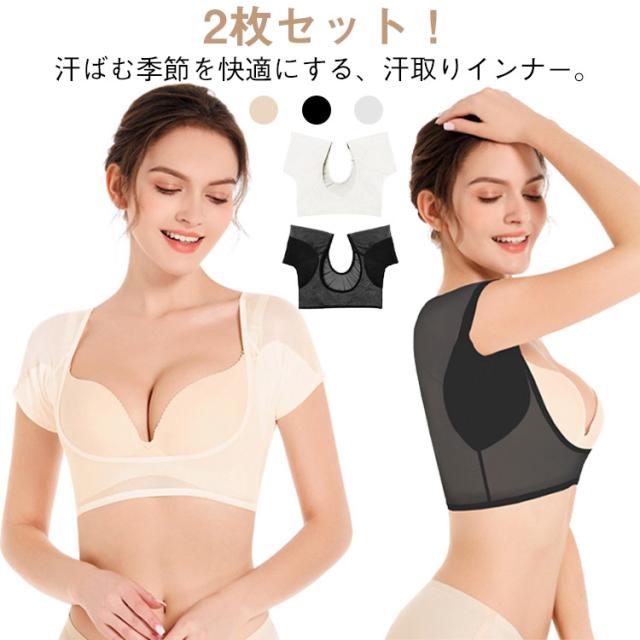 脇汗パッド 2枚セット レディース 汗取りパッド付き 通気性 シースルー 半袖 2枚セット メッシュベスト 汗取りインナー 脇汗 メッシュインナー 黒色 肌色 綿混 インナー 補正下着 伸縮性 汗染み防止 汗とりインナー