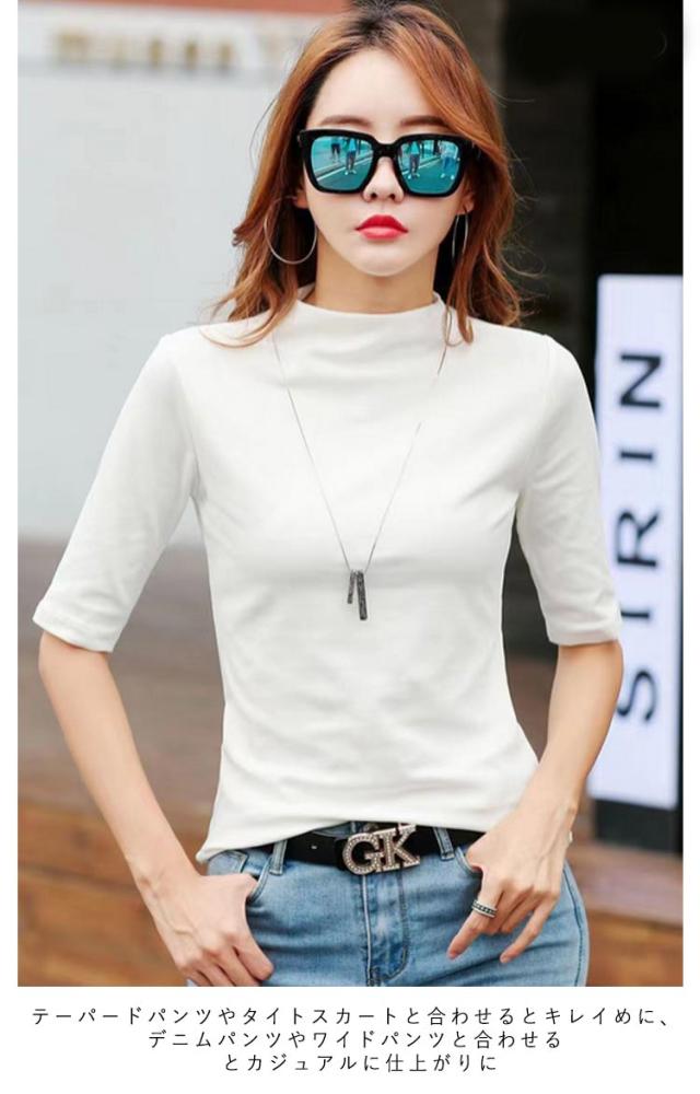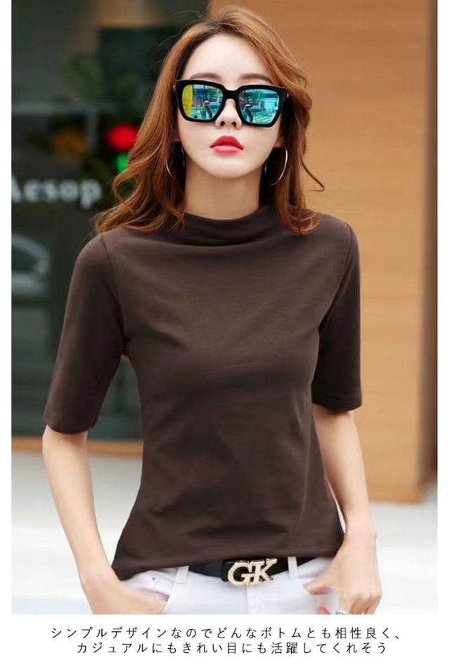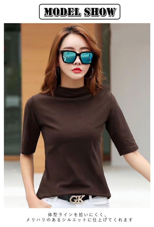 タートルネック 五分袖 大きいサイズ 半袖シャツ 秋 半袖 部屋着 通学 レディース 5分袖 ハイネック 夏 ハイネック 半袖tシャツ tシャツ きれいめ ゆったり カットソー 無地 春夏 通勤 春 シンプル トップス プレゼント ギフト カジュアル おしゃれ 20代 30代