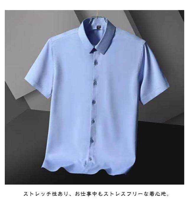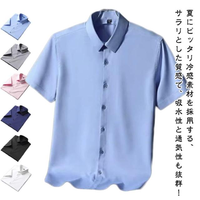 Yシャツ ストレッチ 冷感 Yシャツ 秋 接触冷感 無地 半袖 シャツ 半袖 リクルート ビジネス ノーアイロン ストレッチ ひんやり アイスシルク シワにならない シャツ メンズ お葬式 フォーマル クールビズ 春 夏 涼しい 薄手 カジュアルシャツ 仕事