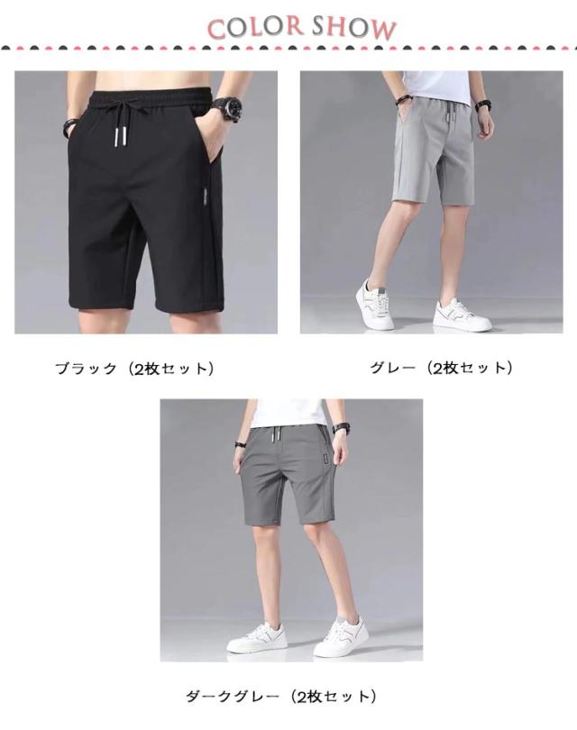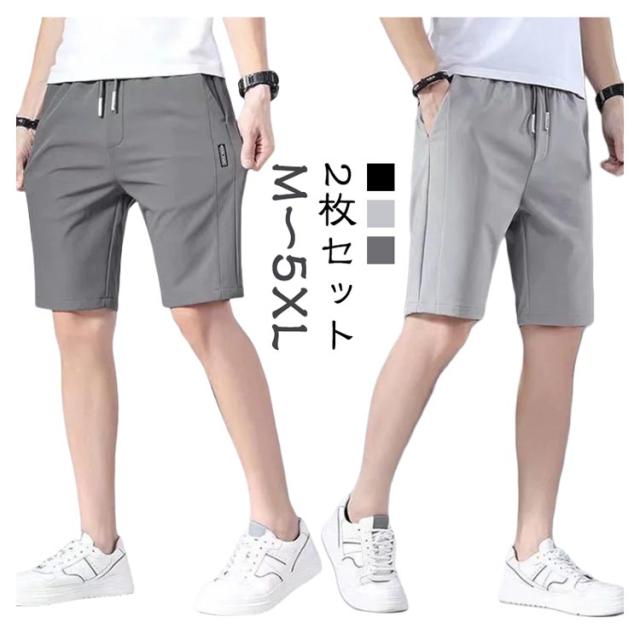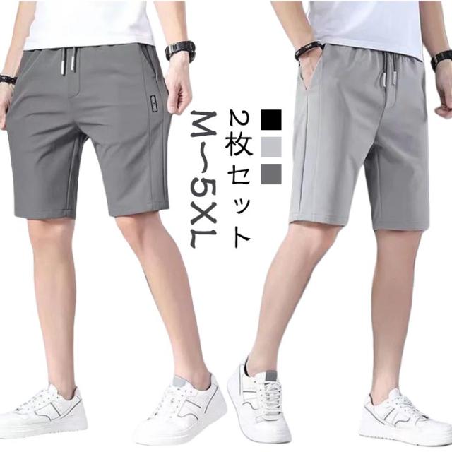 メンズ 夏 2枚セット 半ズボン ハーフパンツ 2枚セット 無地 バスパン 短パン ジュニア 大きいサイズ アイスシルクパンツ ゴルフパンツ ランニング ボトムス イージーパンツ バスケパンツ ゴルフウェア キッズ 涼しい スポーツ 通気性 運動