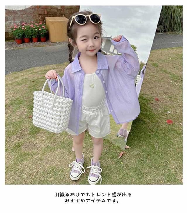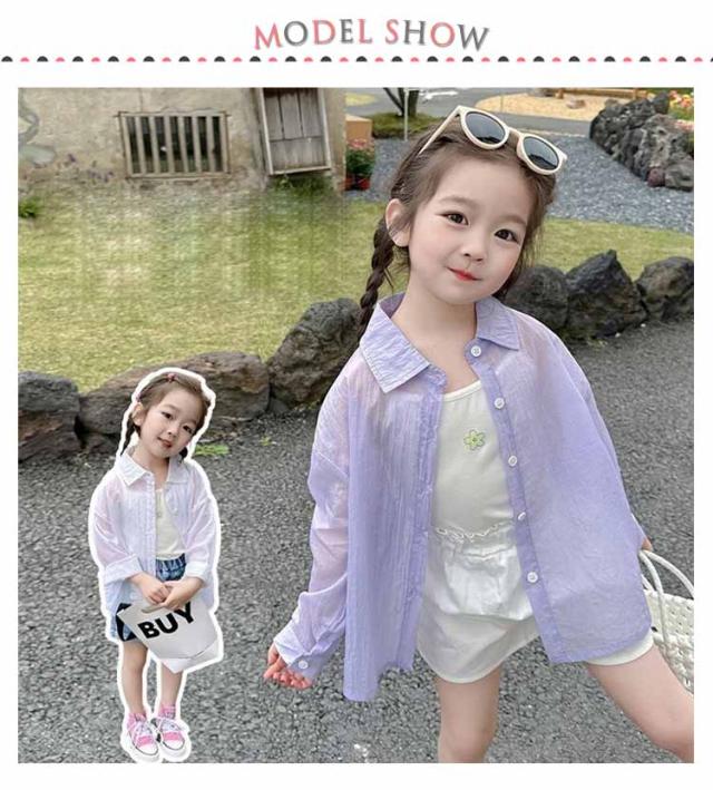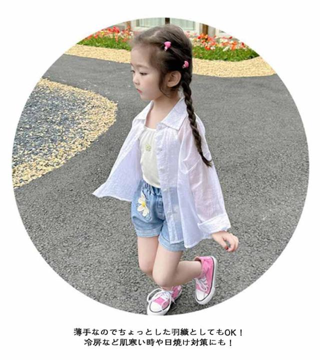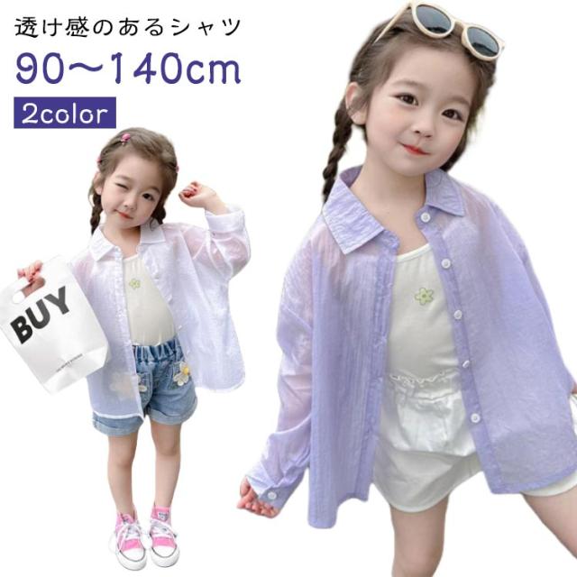 シアー 長袖 透け感 キッズ トップス 小学生 UVカット 子供服 韓国 ブラウス シャツ シースルー 無地 シアーシャツ アウター シンプル 羽織 100 可愛い ガールズ 透けシャツ シャツ 90 110 120 130 140cm おしゃれ 幼稚園