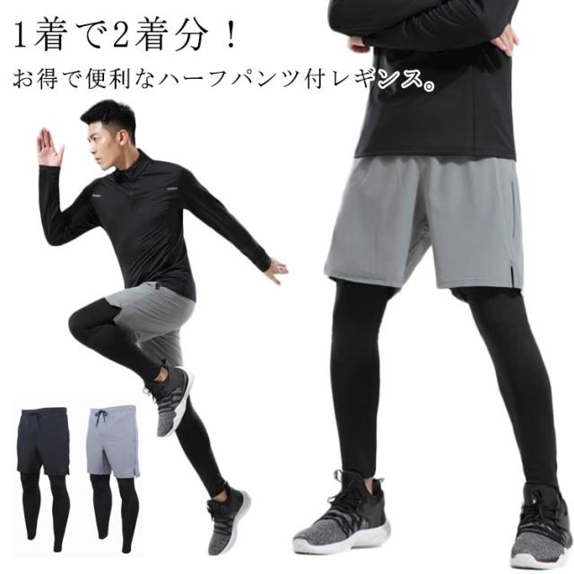 メンズ レイヤードレギンス 送料無料 スパッツ ハーフパンツ テニス スパッツ スポーツウェア メンズ レギンス スポーツレギンス スポーツレギンス ランニング メンズ 送料無料 フェイクレイヤード 重ね着 ジョギング ジム 紫外線対策