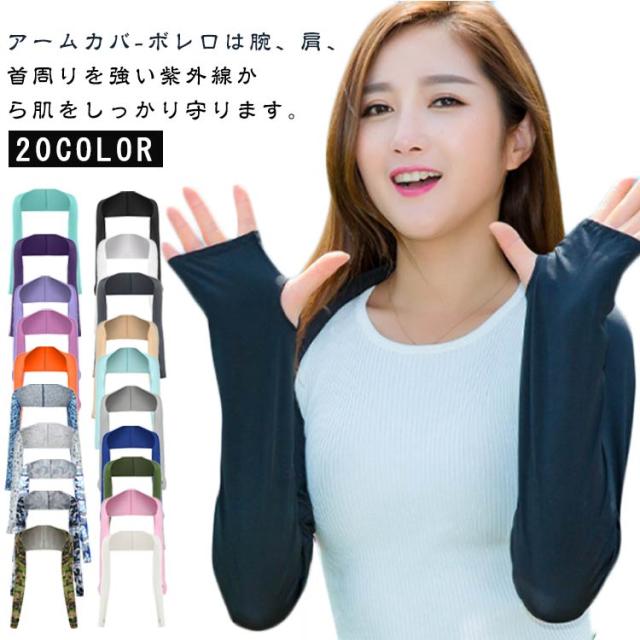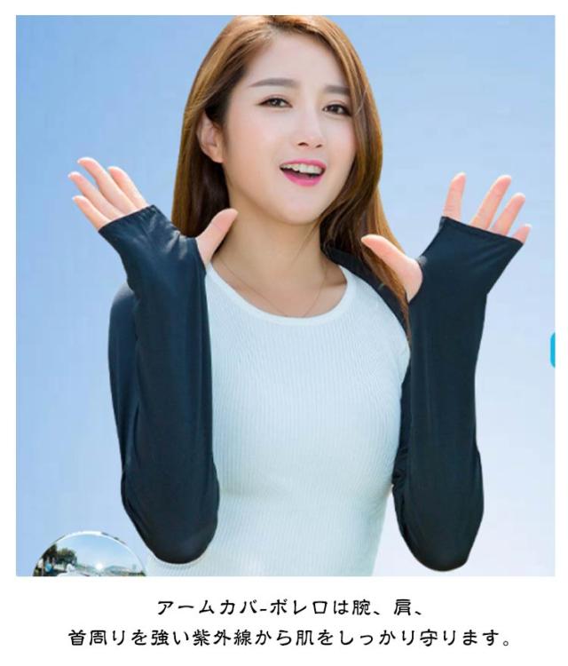 ひんやり 指穴あり アームカバー 着るアームカバー 腕カバー 肩までガード 着るアームカバー UVカット ボレロ 接触冷感 メンズ レディース ゴルフ 運転用 紫外線対策 ロング丈 伸縮性 お洒落