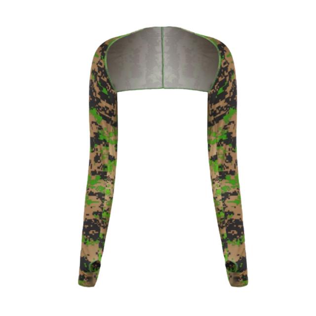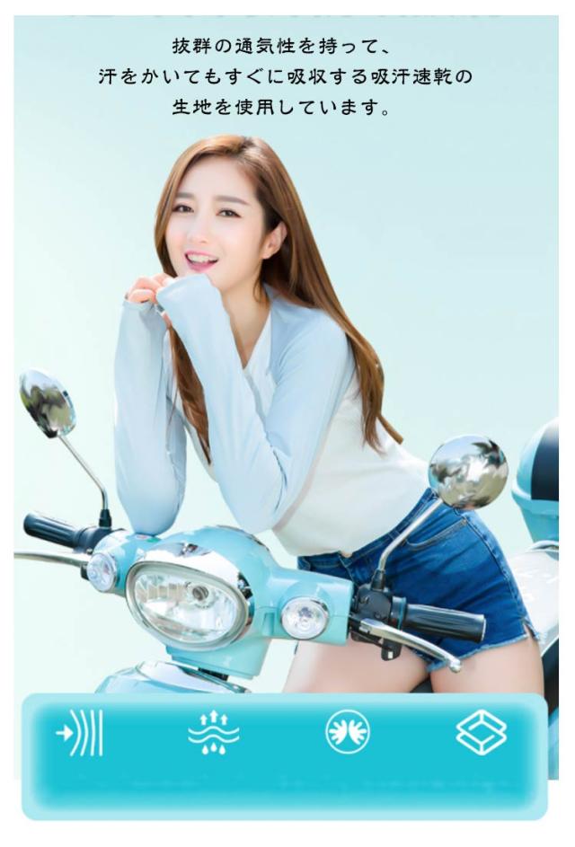 | アームカバ-ボレロは腕、肩、首周りを強い紫外線から肌をしっかり守ります。 接触冷感材質を採用して、水や汗で濡れると気化熱の作用により冷却効果があり、温度を3−5度を下がる涼しいと感じます。 抜群の通気性を持って、汗をかいてもすぐに吸収する吸汗速乾の生地を使用しています。 ボレロタイプのデザインなので手首から肩まで広範囲を守るため効果的です。 ストレッチ性のある生地を採用しているため、締めつけ感が少なく、腕を動かしやすい仕様になっています。 親指穴があるので手の甲まで、手首までどちらにも調整できます。 軽量でコンパクトに折りたためるため、バッグに入れて持ち運びやすいのも魅力。 | |