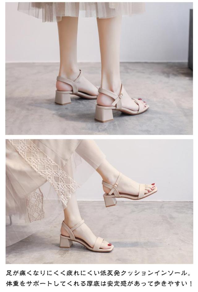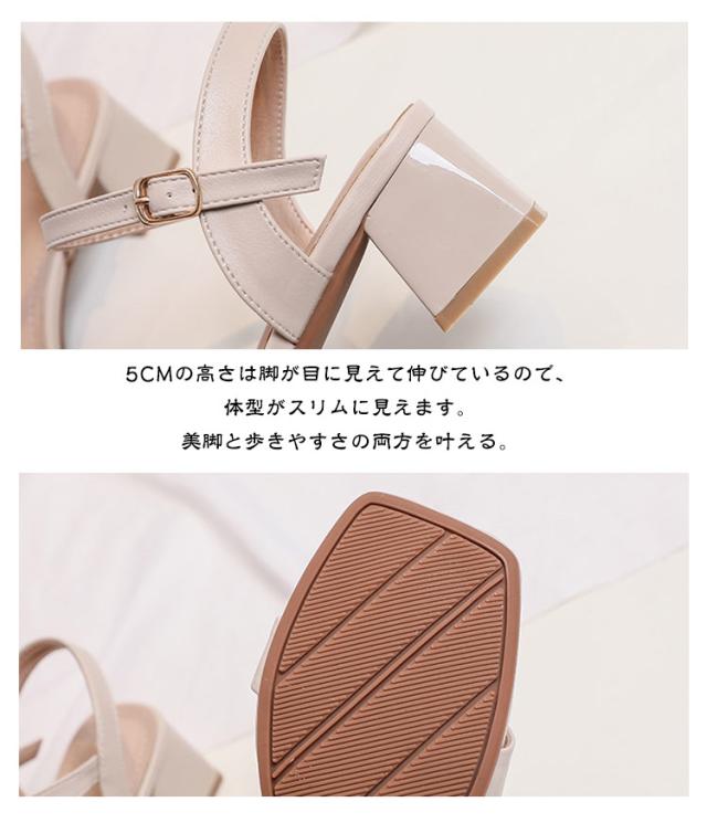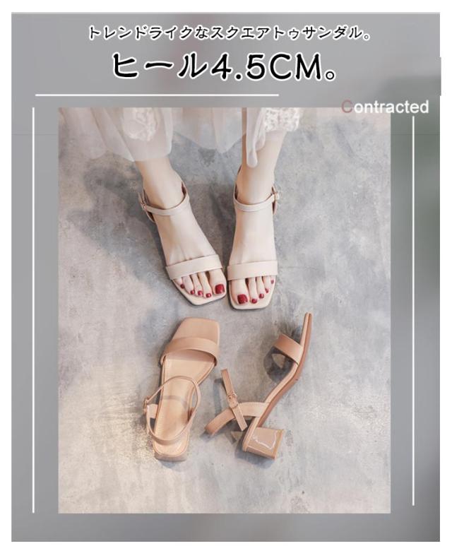 | トレンドライクなスクエアトゥサンダル。ヒール4.5cm。 女性らしさが高まる肌見せデザイン。華奢なストラップが大人な雰囲気の一足。 足が痛くなりにくく疲れにくい低反発クッションインソール。体重をサポートしてくれる厚底は安定感があって歩きやすい! 4.5cmの高さは脚が目に見えて伸びているので、体型がスリムに見えます。美脚と歩きやすさの両方を叶える。 カジュアルコーデにはもちろん、ワンピースやナチュラルスタイルと合わせてコーデに抜け感をプラス。 オープントゥで抜け感もデイリー使いはもちろん、ビーチや海などでサンダルとしてもオススメです。 | |
