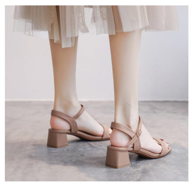 スクエアトゥパデッドサンダル サンダル レディース スクエアトゥ 歩きやすい チャンキーヒール スクエアトゥ シンプル アンクルストラップ 滑りにくい ヒール4.5cm スクエアトゥ カジュアル おしゃれ きれいめ