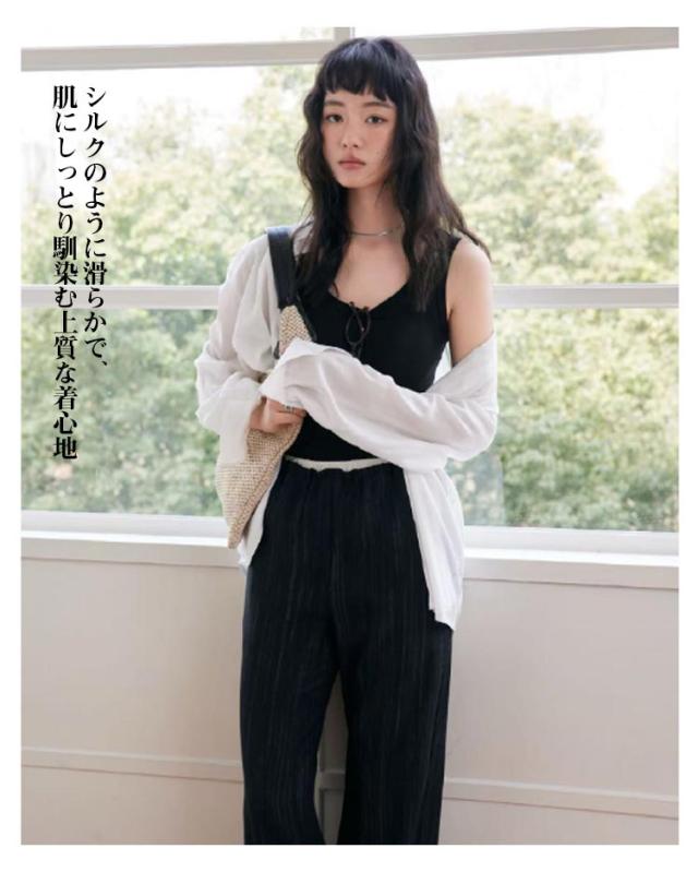 | 【全6色】タンクトップ テンセル×ウールの絶妙な融合 シルクのように滑らかで、肌にしっとり馴染む上質な着心地 アセテート繊維も加え、長時間の着用でも柔らかさと快適さが持続 高弾力・ぴったりフィット 肌にやさしく沿うリブ調生地で、1枚でもインナーとしても美シルエット 伸縮性◎で締めつけ感ゼロ 無地デザインで、カーディガンやシャツのインナーに最適 肌見せが上品に仕上がる丸首デザイン | |