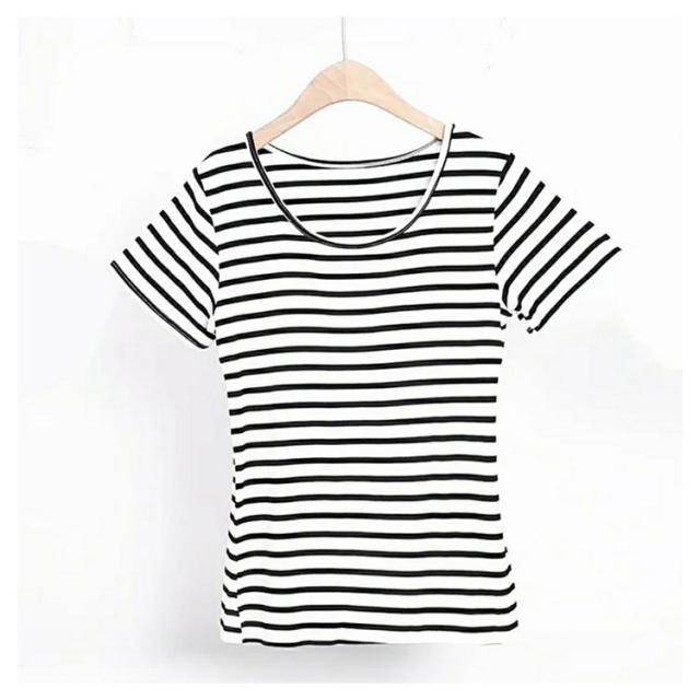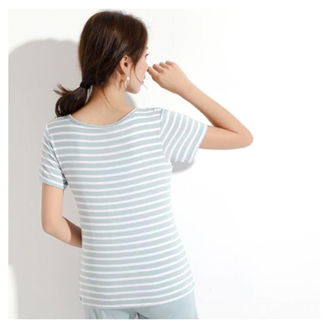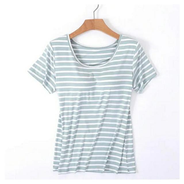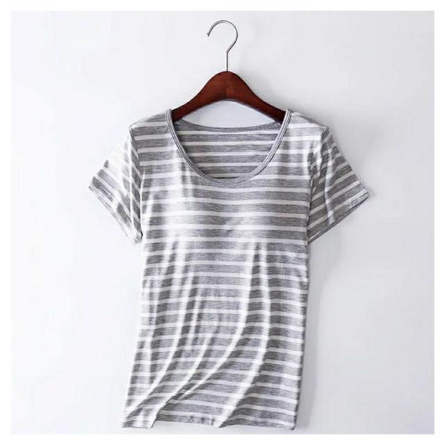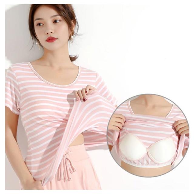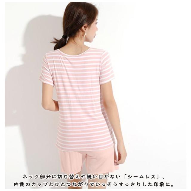 ブラ付き 夏 半袖 ボーダー 部屋着 ルームウェア 半袖インナー レディース 丸首 ブラトップインナー カップ付 カップ付き 半袖 Tシャツ カットソー トップス インナー パジャマ 定番 シンプル 無地 ゆったり カジュアル おしゃれ
