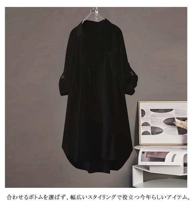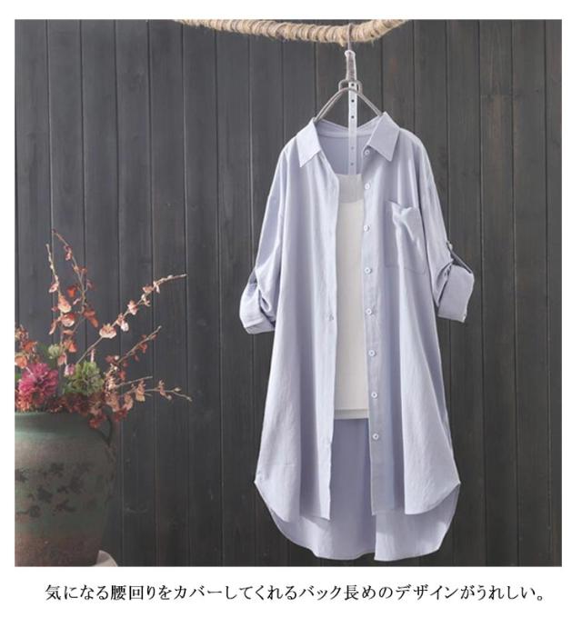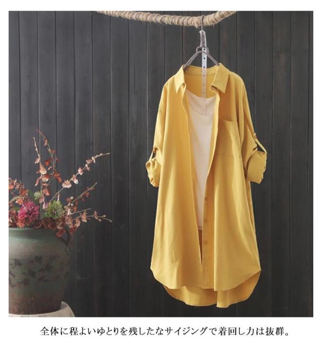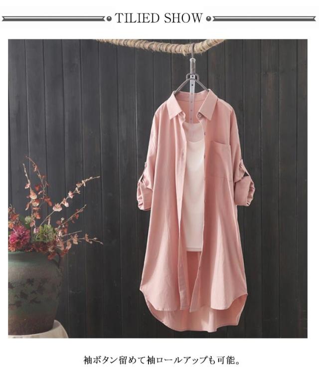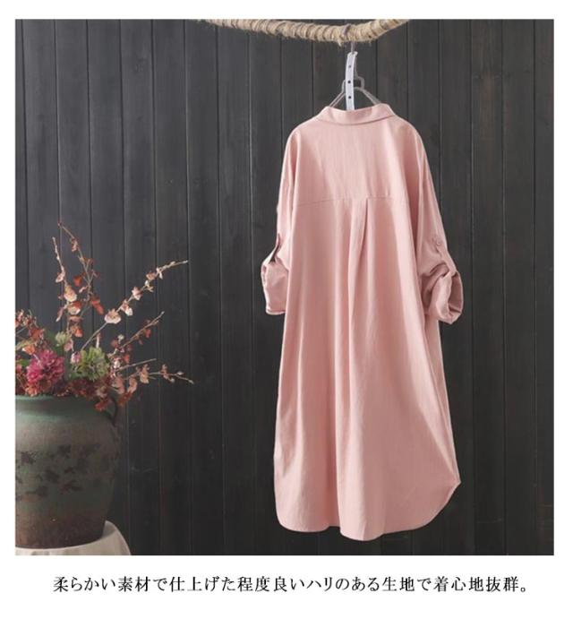 ロングシャツ シャツワンピース 袖ロールアップ レディース ロング丈 シャツワンピ 羽織り 40代 長袖 ゆったり 体型カバー チュニック丈 春服 秋服 無地 オーバーサイズ シンプル 大きめ 大きいサイズ 送料無料 20代 30代 ロングシャツ 50代 シンプル