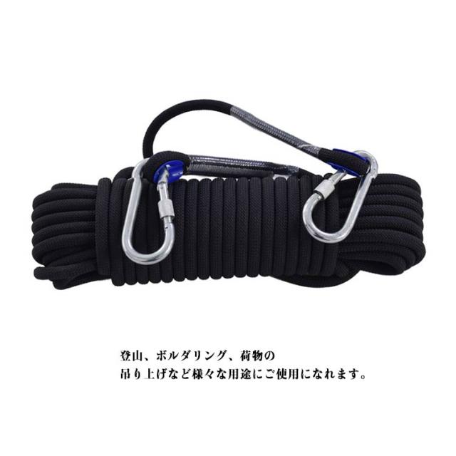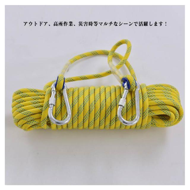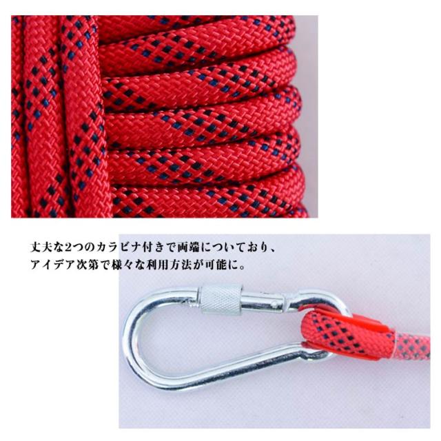 10m 10mm 送料無料 クライミングロープ ロープ 30m 50m 60m 70m アウトドア 送料無料 クライミング カラビナ付き 12mm 多目的ロープ キャンプ 消防 多機能ロープ 登山 救助ロープ 補助ロープ 耐久性 防災グッズ