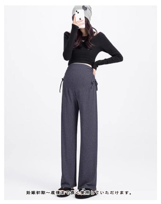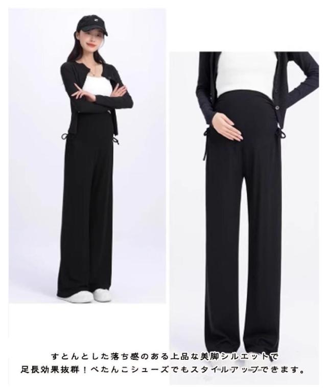 マタニティ マタニティ ズボン 妊婦服 夏 アイスシルク 産前産後 ウエスト調節可能 パンツ マタニティウェア 長ズボン ロングパンツ ジョガーパンツ ストレートパンツ マタニティワイドパンツ 部屋着 ボトムス ゆったり カジュアルハイウエスト 薄手 無地