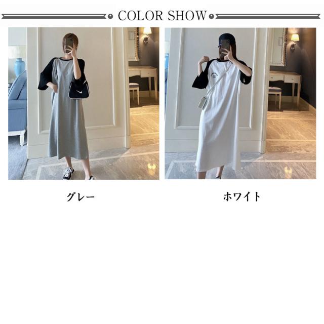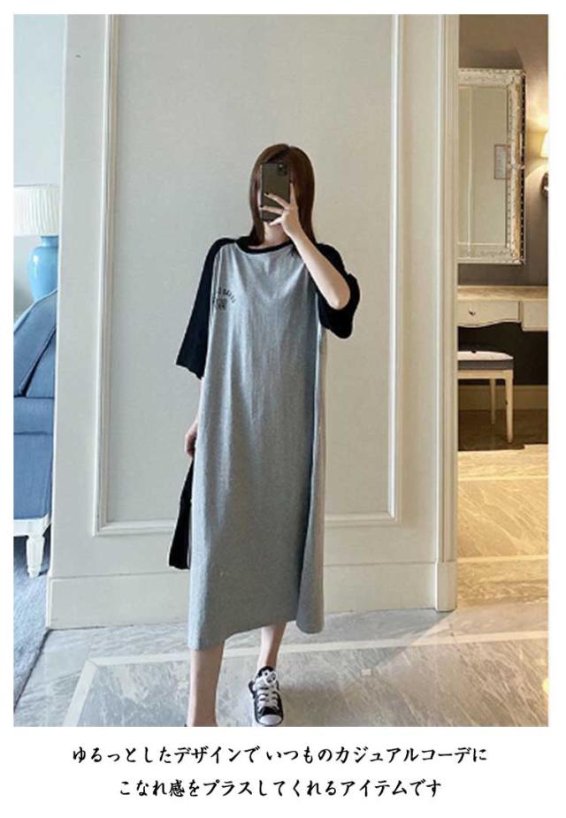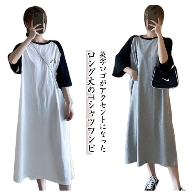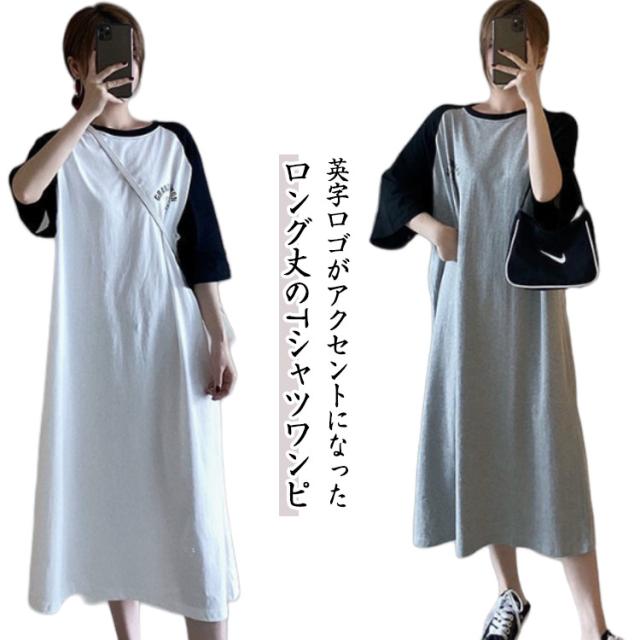 Tシャツ カジュアル ワンピース ロング丈 tシャツワンピース ルームウェア tシャツワンピース 体型カバー ロゴ マキシワンピ おしゃれ BIG クルーネック ゆったり 着痩せ 大きめ プリント 大きいサイズ スポーティー ロゴT 部屋着 カットソー ロングワンピ 韓国ファッション