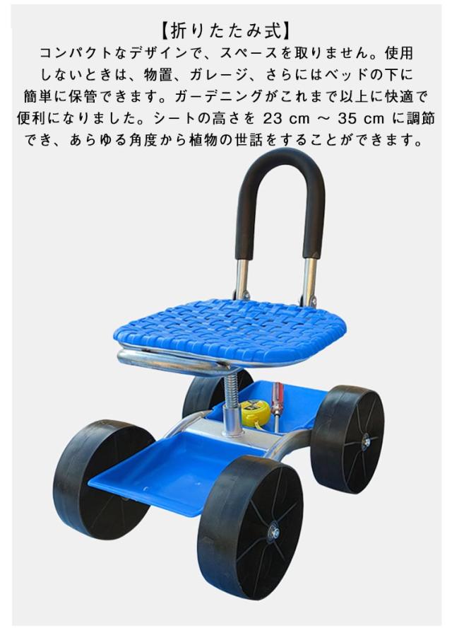 4輪 腰掛け台車 4輪 農作業 座面 背もたれ付き 車輪付き 畑仕事 高さ調節 ガーデニングカート 椅子 園芸用カート ガーデンカート 座れる 折りたたみ 360°回転 収納機能 作業カート 横移動 台車 作業椅子 タイヤ付き