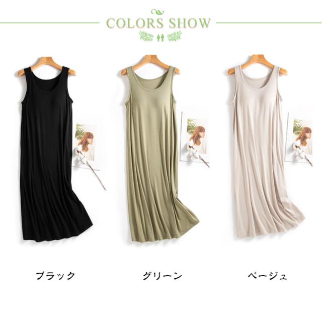 | カップ付きロングタンクトップ 軽くて薄い生地のインナーワンピース 胸元が二重構造になっているブラカップ付き カップは別布に丁寧に縫い付けられており、アンダーにはソフトサークルゴム クッションパッドには程よい厚みがあり、バストをキレイに見せてくれます タンクトップタイプなので胸元・背中も程よくカバー 長さは膝にかかる程度(個人差有)でワンピやスカートインナーに最適です またモダール生地は吸方湿性に優れておりずっと快適な着心地 足に纏わりつくこともありません 様々なワンピコーデに合わせられるよう厳選した5カラー またナイトウェアにもおすすめです! | |