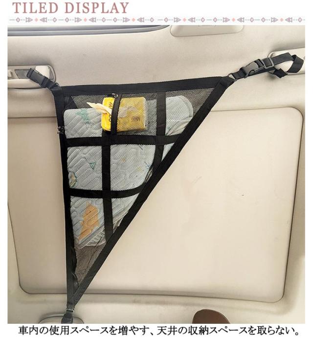 | 車内天井収納!ポリエステル材質採用耐久性があり丈夫。 メッシュ構造なので通気性も抜群。 車内の使用スペースを増やす、天井の収納スペースを取らない。 | |