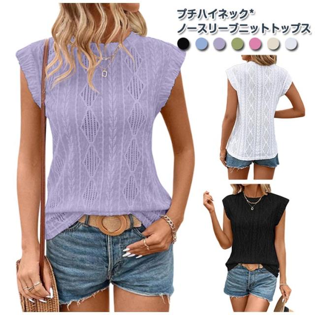 トップス プチハイネック ホワイト タンクトップ レディース ハイネック ノースリーブニット サマーニット 春ニット 夏ニット シンプル ニットベスト セクシー タイト インナーニット ハイネック 黒 白