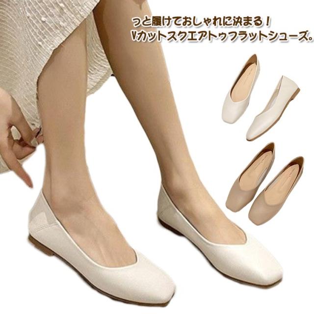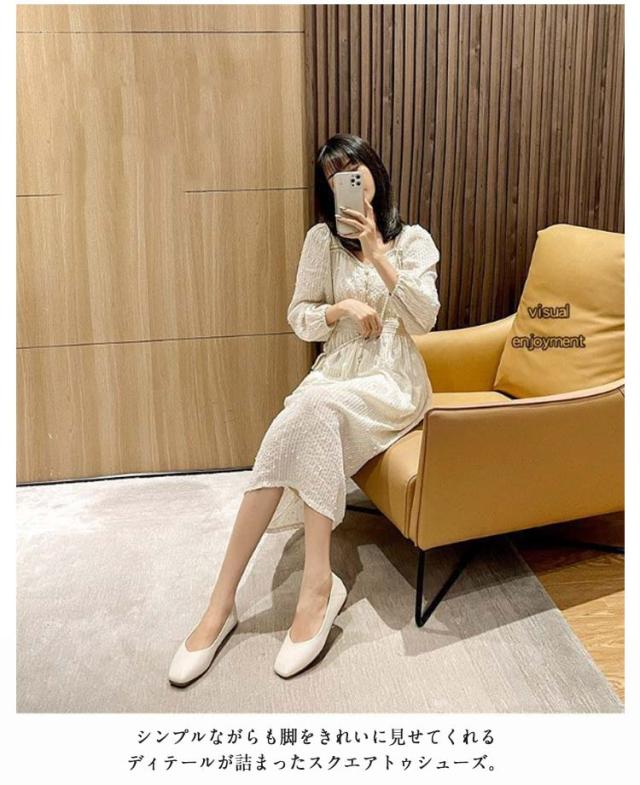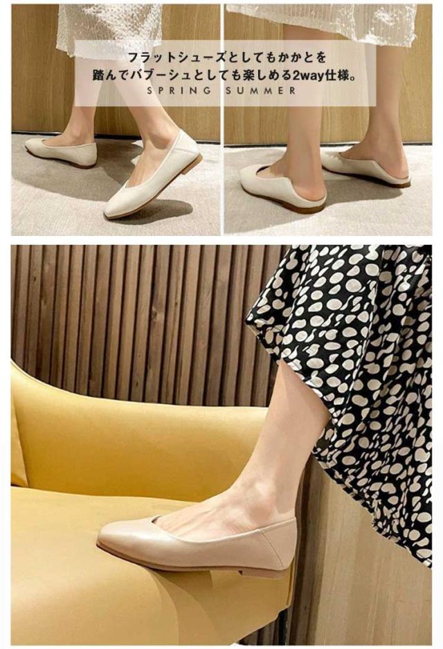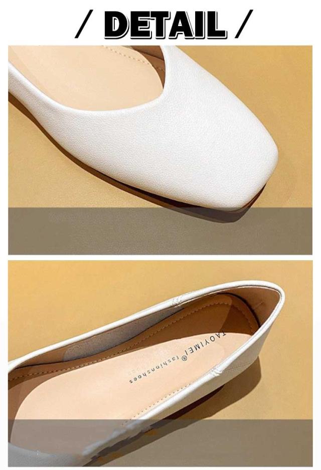 バレエシューズ パンプス 歩きやすい スクエアトゥ ローヒール スクエアパンプス 痛くない レディース スクエアトゥパンプス フラットシューズ 軽量 スクエアトゥ 2way