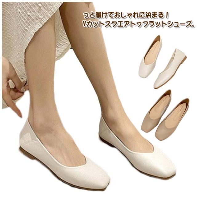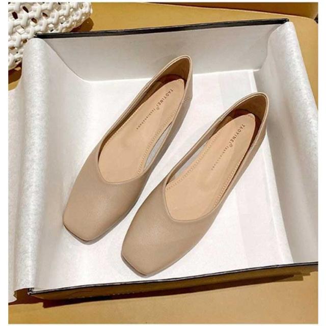 | さっと履けておしゃれに決まる!Vカットスクエアトゥフラットシューズ。 シンプルながらも脚をきれいに見せてくれるディテールが詰まったスクエアトゥシューズ。 フラットシューズとしてもかかとを踏んでバブーシュとしても楽しめる2way仕様。 フラットなのでたくさん歩けます! | |