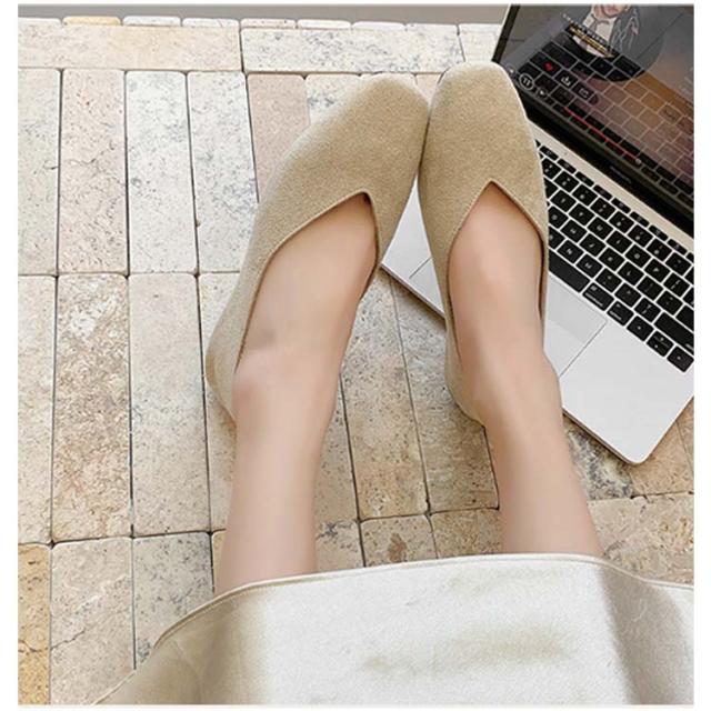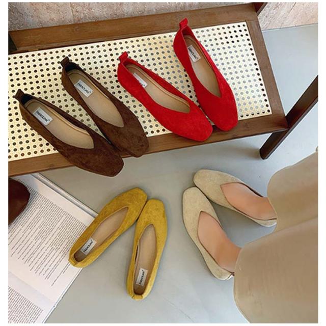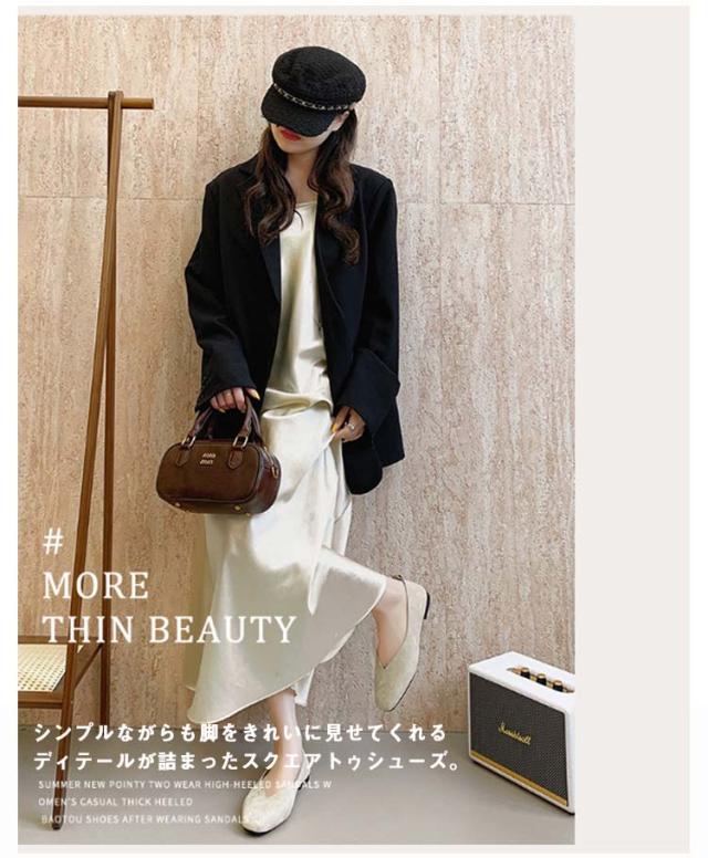| さっと履けておしゃれに決まる!Vカットスクエアトゥフラットシューズ。 シンプルながらも脚をきれいに見せてくれるディテールが詰まったスクエアトゥシューズ。 フラットシューズとしてもかかとを踏んでバブーシュとしても楽しめる2way仕様。 フラットなのでたくさん歩けます! | |