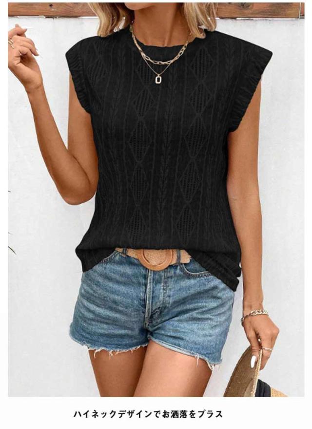 ブラック サマーニット タンクトップ ノースリーブニット レディース トップス 夏ニット ホワイト シンプル ハイネック プチハイネック ニットベスト セクシー タイト インナーニット 春ニット 黒 白