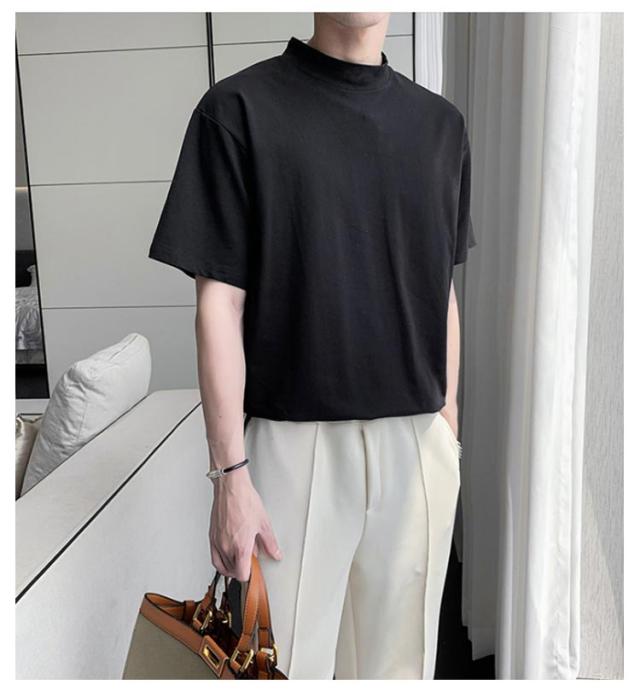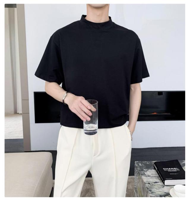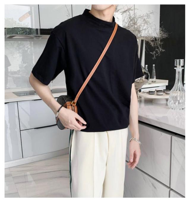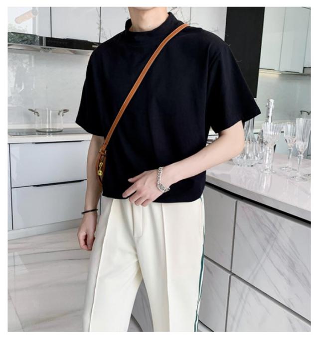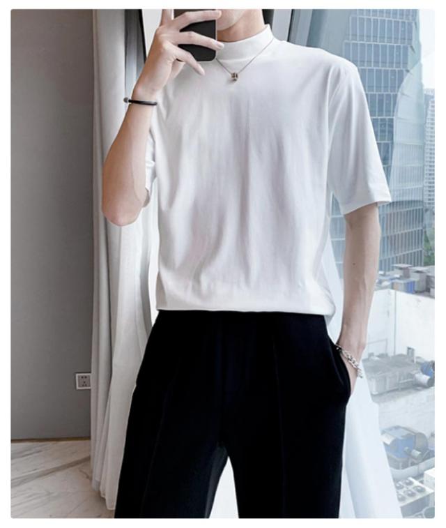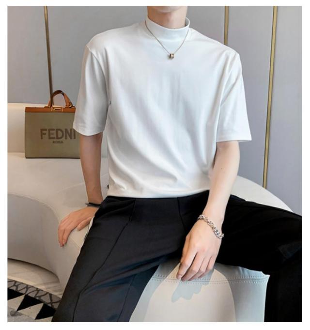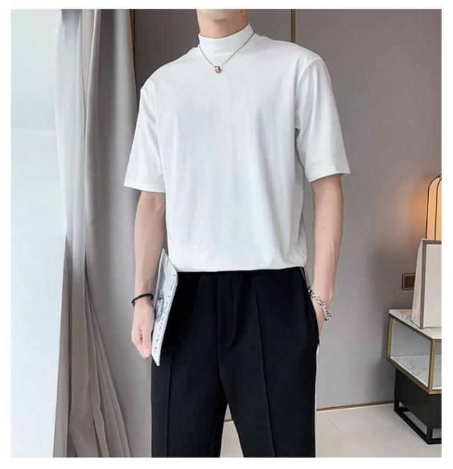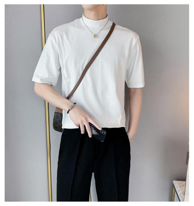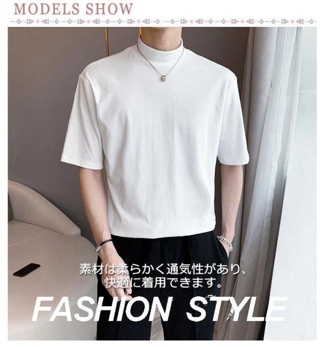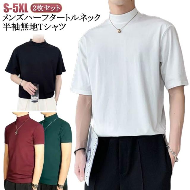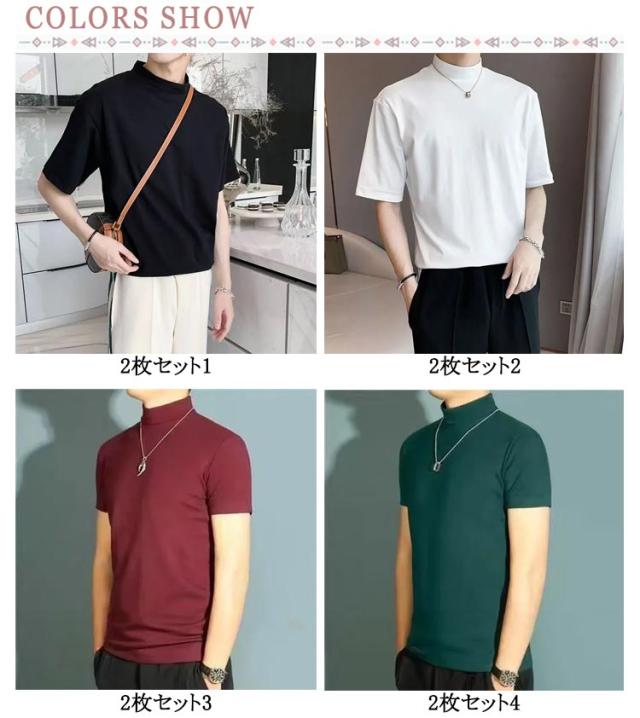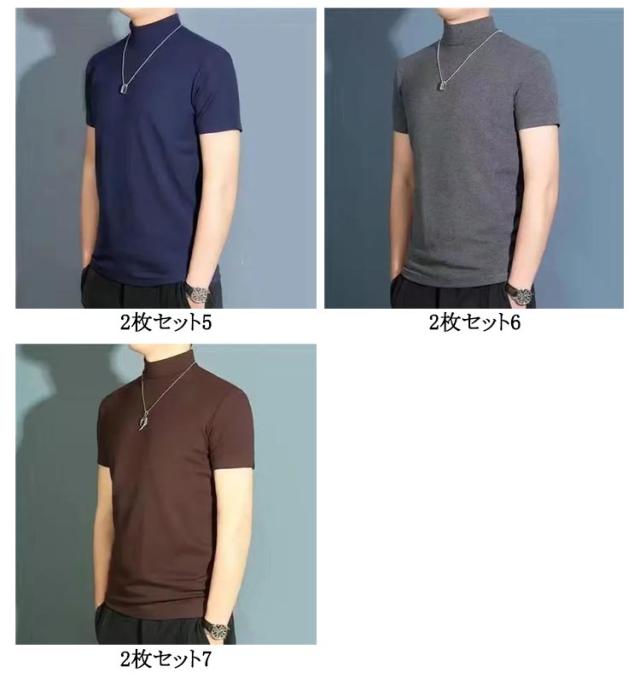 | 2枚セット メンズ ハーフタートルネック 半袖 無地 Tシャツ 素材は柔らかく通気性があり、快適に着用できます 春夏にも着ていただけます | |