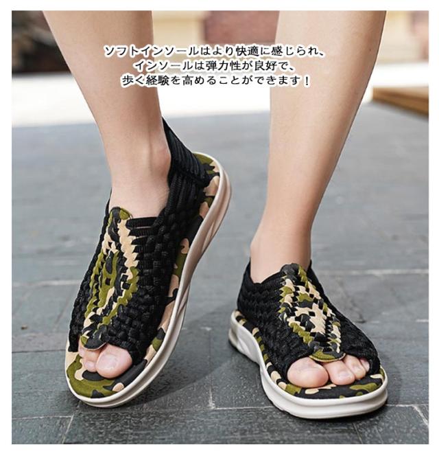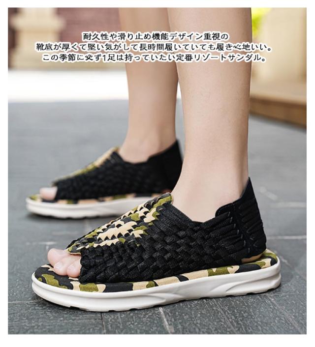 リゾートサンダル サンダル 春 手編み 歩き やすい メンズ レディース スポーツサンダル 編み込み 厚底 編み 夏 履きやすい サンダル 涼しい 通気性 耐久性抜群 ハンドメイド リラックス ストレッチ アウトドア お洒落