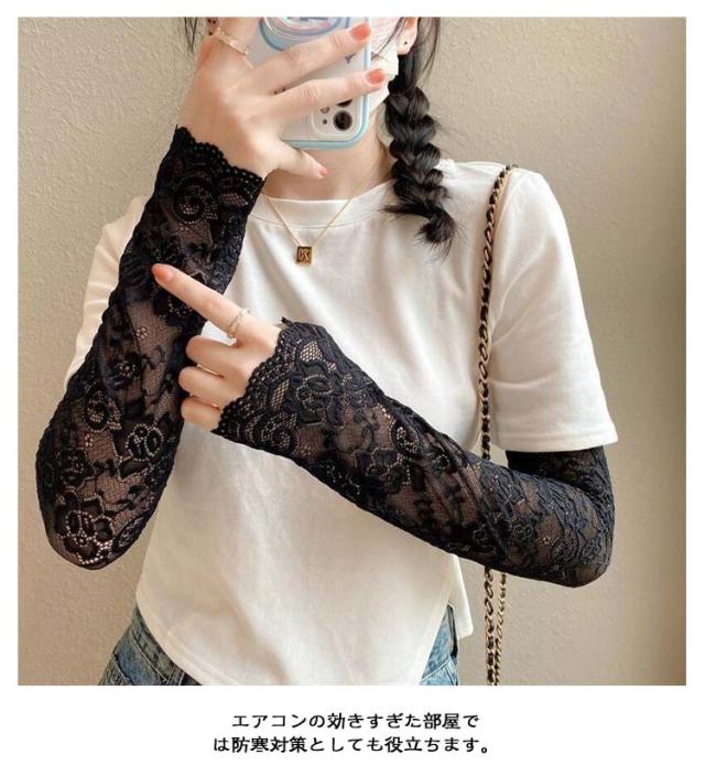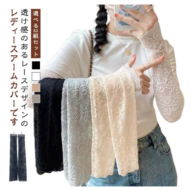 レース 春用 アームカバー 花柄 【選べる2組セット】 黒 ロング丈 アームカバー おしゃれ レディース 可愛い 夏用 総レース 夏用 紫外線ダメージからお肌をガード!運転 uv 上品 紫外線対策 春 夏 大人 ゴルフ 透け感 指なし 手首 涼しい 白 車 日焼け防止