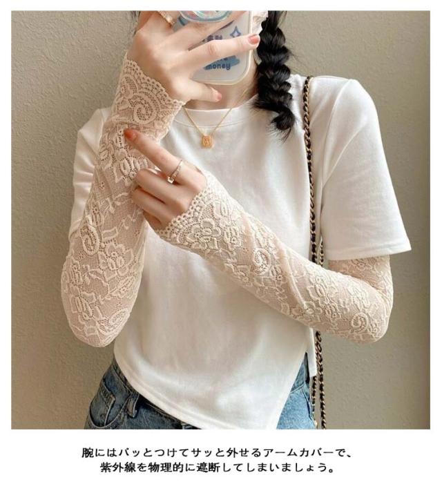 | 透け感のあるレースデザインのレディースアームカバーです。【選べる2組セット】 ちょっとしたお出かけなどのコーデにもあわせやすく、上品で高級感もあります。 日焼け止めを塗って、帽子をかぶったり日傘をさしたり、紫外線対策は大変! 腕にはパッとつけてサッと外せるアームカバーで、紫外線を物理的に遮断してしまいましょう。 エアコンの効きすぎた部屋では防寒対策としても役立ちます。 さりげない花柄のレースでガーリーを演出。 Tシャツやノースリーブとのレイヤードはもちろん、レース素材はモダン着物を着こなす為のコーディネートアイテムにも使えます。 | |