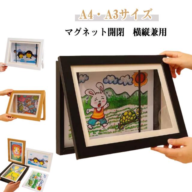 A4 アートフレーム 作品 子供の絵を飾る インテリア 木製 A3 マグネット開閉 額縁 壁掛け ポスター フォトフレーム 絵画 写真 子供 保管 収納 ディスプレイ 玄関 アートフレーム 横縦兼用 おしゃれ ポスターフレーム 孫 学校 絵画教室 幼稚園 保育園